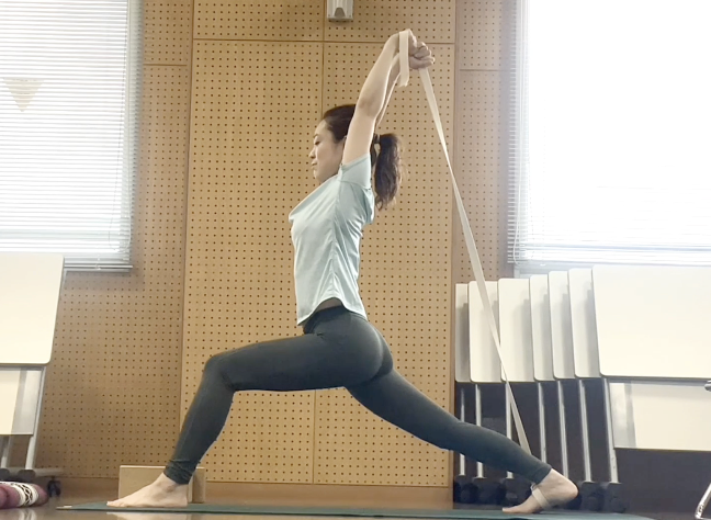 ① ベルトを使った ヴィーラバドラ・アーサナⅠ