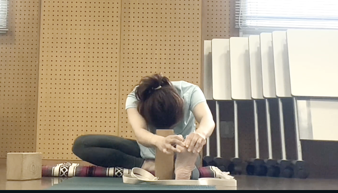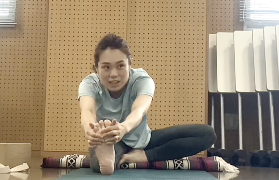 ※ 前屈が苦手な方や腰に不安がある方でも、プロップ使用により安全に行えます。