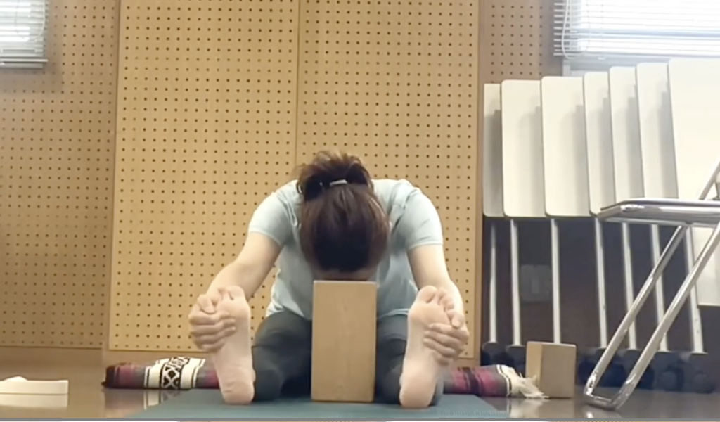 ※ブロックを使うことで、無理な前屈を防ぎ、安全に効果を得られます。