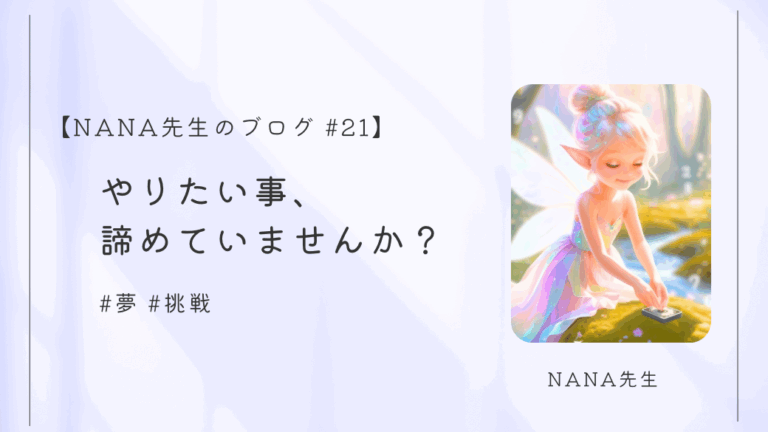 やりたいなと思うことがあっても、どうせ私には無理、今は時間がない、体調が心配と諦 […]