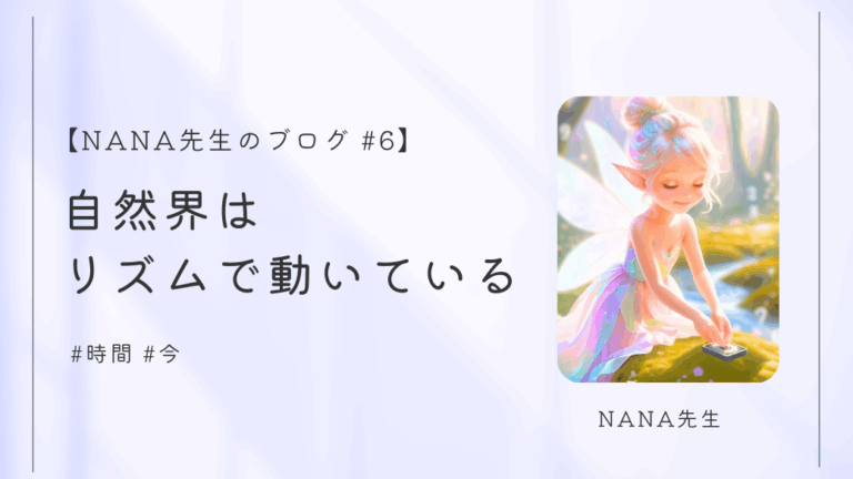 2025年8月17日 2025年12月8日 0件 【Nana先生 コラム #6】自然界はリズムで動いている 前回最後の方に『宇宙に時計なんてない』と書きました。 時計とは時間のこと。時間や […] 続きを読む