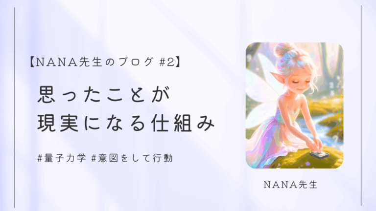 2025年8月17日 2025年12月8日 0件 【Nana先生 コラム #2】思ったことが現実になる仕組み 今日は私の例え話を元に思ったことが現実になることをお伝えします😊これは、私が量子 […] 続きを読む
