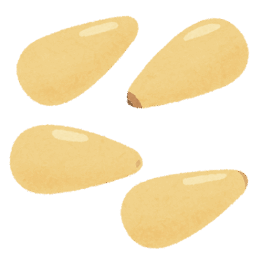 - 松の樹から採取する必要があり、家庭での生産は難しい。苗木を育てて数年後に種子が採れるが手間がかかる。