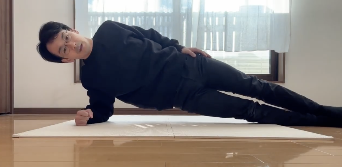 《秋の体操・大腸》大腿筋膜張筋トレーニング④サイドブリッジ(脚上げなし)【自律神経体操 内臓体操】